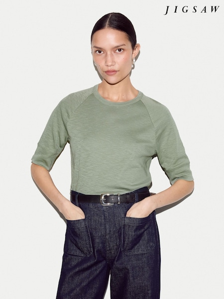 Jigsaw Green Cotton Luxe Raglan Short Sleeve T-Shirt