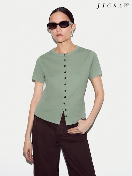 Jigsaw Green Fine Rib Baby Button T-Shirt