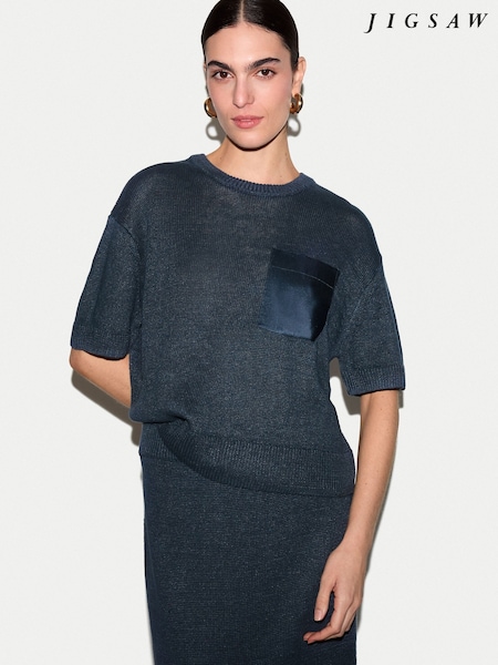 Jigsaw Blue Linen Silk Pocket T-Shirt