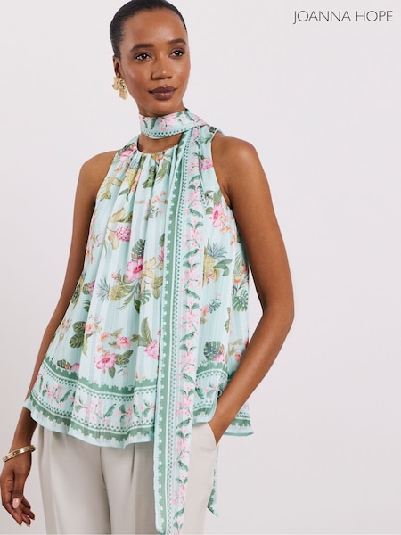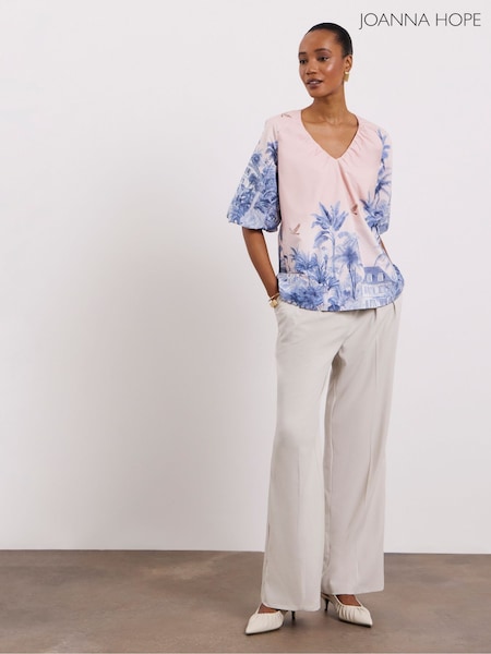 Joanna Hope Blue Cotton Poplin Floral Blouse
