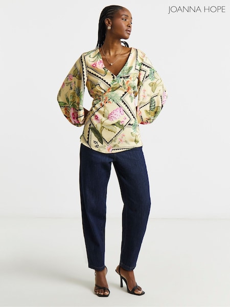 Joanna Hope Puff Sleeve White Blouse With Neck Detail