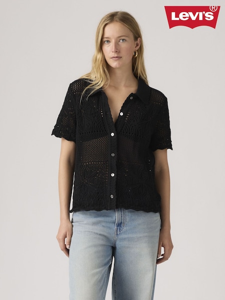 Levi's Bejewled Washed Black Iconic Western Denim Shirt