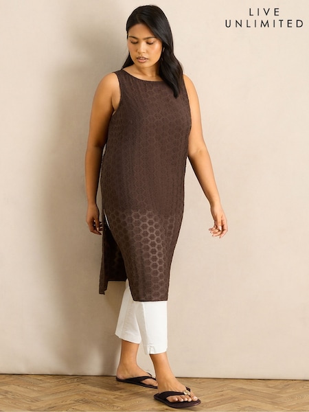 Live Unlimited Brown Geo Print Slash Neck Tunic