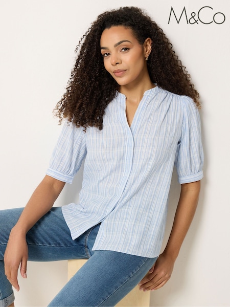M&Co Blue Short Puff Sleeve Blouse