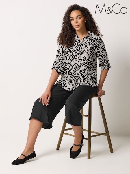 M&Co Black Jacquard Detail Half Placket Shirt