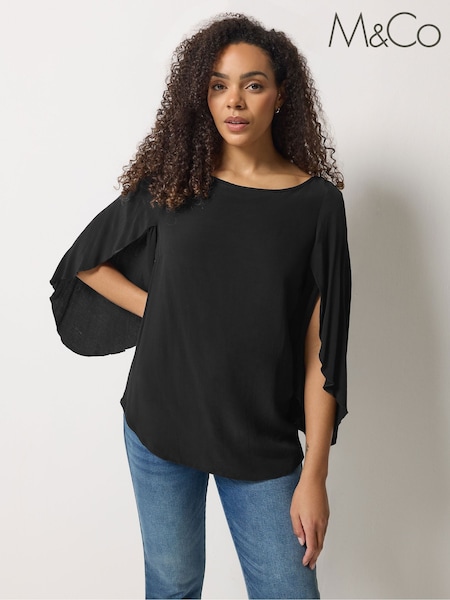 M&Co Black Long Angel Sleeve Blouse