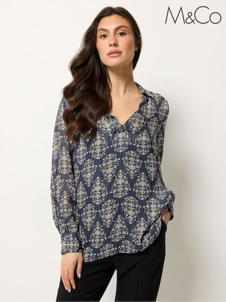 M&Co Blue Petite Floral Cotton Scoop Neck Top