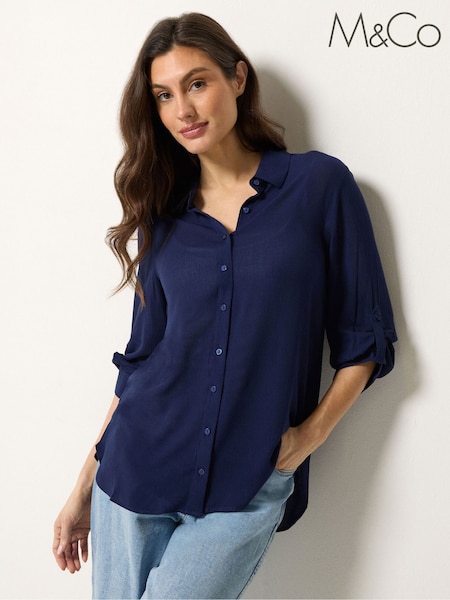 M&Co Navy Blue Crinkle Tab Sleeve Shirt