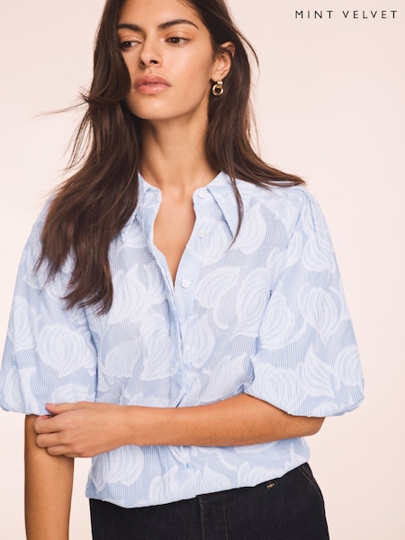 Mint Velvet Blue Cotton Jacquard Striped Shirt