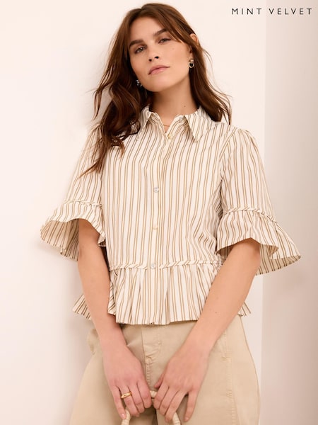 Mint Velvet Natural Striped Ruffle Trim Shirt