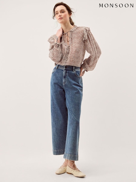 Monsoon Blue Sasha Floral Print Ruffle Blouse
