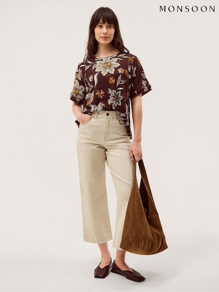 Monsoon Brown Esther Floral Linen Blend T-Shirt