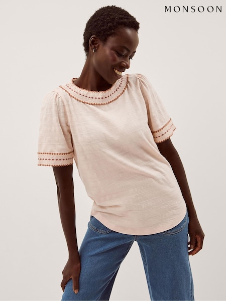 Monsoon Pink Tammy Puff Sleeve Embroidered Top