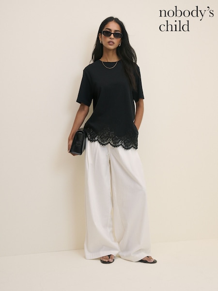 Nobodys Child Black Lace Hem Boxy T-Shirt