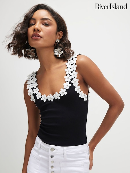 River Island Black Sleeveless Stripe Textured Top