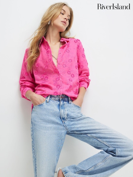 River Island Pink 3D Floral Embellished Shirt