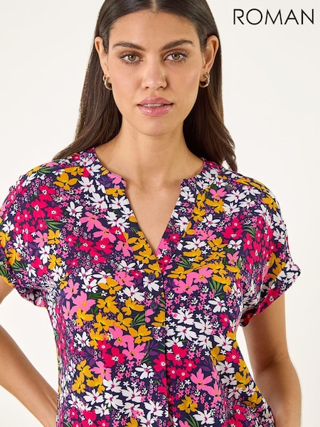 Roman Pink Paisley Print V-Neck Stretch Shirt