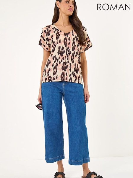 Roman Pink Animal Print Seam Front Top