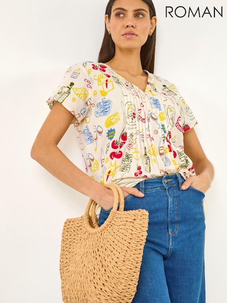 Roman Red Broderie Anglaise Frill Sleeve Top
