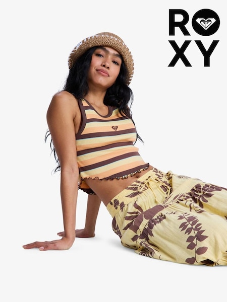 Roxy Brown Sunslight Boost Stripe Logo Scoop Neck Tank Top