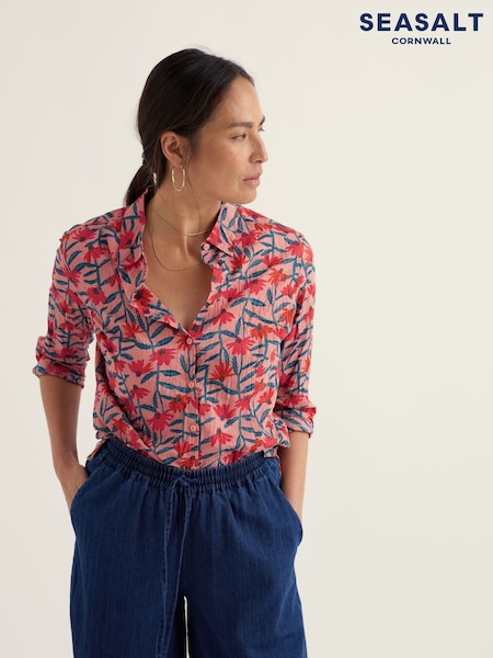Seasalt Cornwall Pink Easel Long Sleeve Top in Cotton Jersey