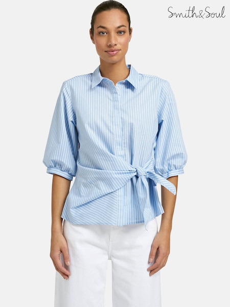 Smith & Soul Blue Striped Cotton Shirt with Knot Tie
