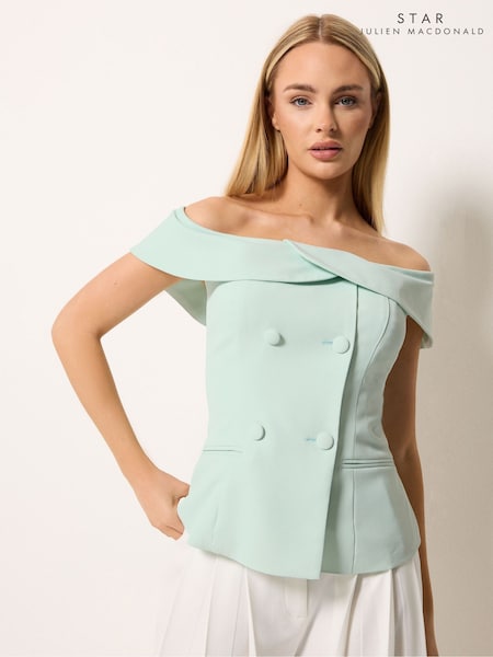 Star by Julien MacDonald Green Button Detail Bardot Top
