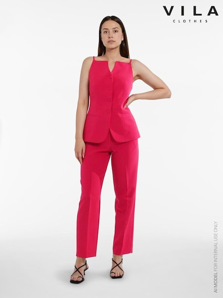 VILA Pink O-Neck Short Sleeve Textured Knit Top