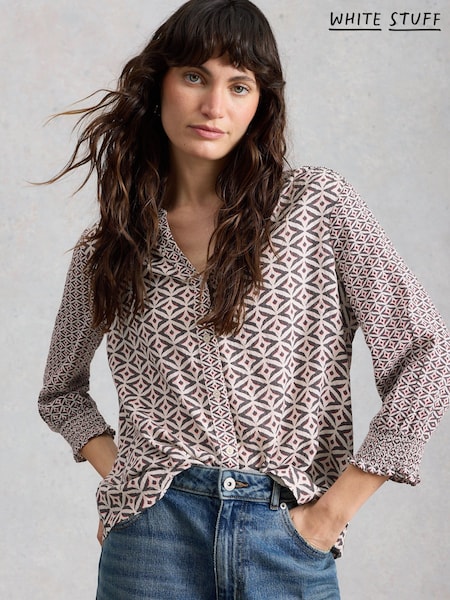 White Stuff Natural Ash Linen Blend Top