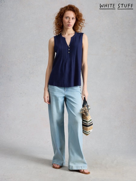 White Stuff Sky Blue Rowan Linen T-Shirt