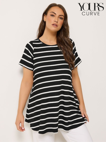 Yours Curve Black/White Stripe Ribbed Swing Top