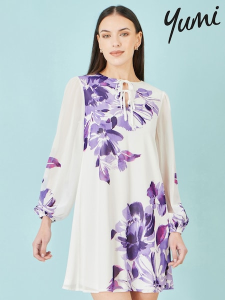 Yumi Purple Floral Placement Tunic With Keyhole Neckline