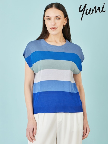 Yumi Blue Block Stripe Relaxed Knitted Top