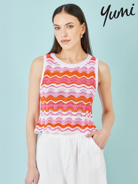 Yumi Orange Stripe Crochet Stripe Vest Top