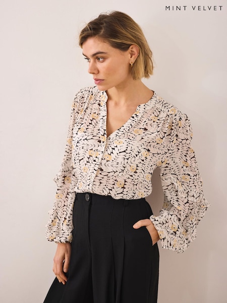 Mint Velvet Cream Floral Print Ruffle Blouse