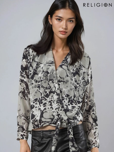 Love & Roses Grey Cosmic Print Celestial Metallic Cape Long Sleeve Top