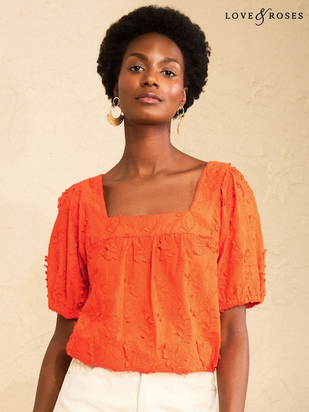 Love & Roses Orange 3D Palm Square Neck Blouse