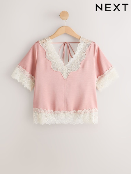 Love & Roses Blush Pink Two Tone Lace Detail Short Sleeve Blouse