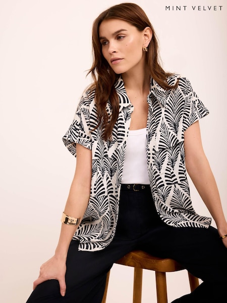 Mint Velvet Blue Leaf Print Resort Shirt