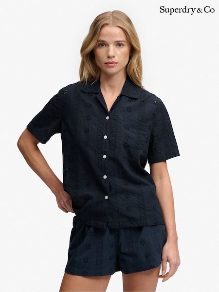 Superdry Navy Heritage Broderie Short Sleeves Shirt