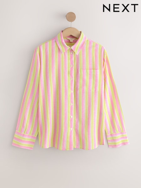 Pink/Yellow/White Stripe Relaxed Long Sleeve Shirt With Linen