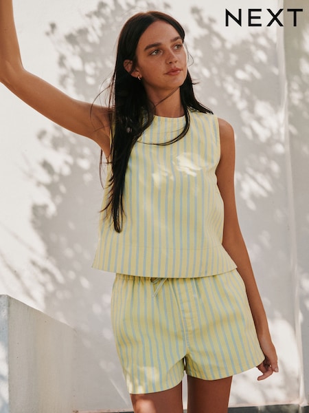 Yellow Stripe Denim Shell Top