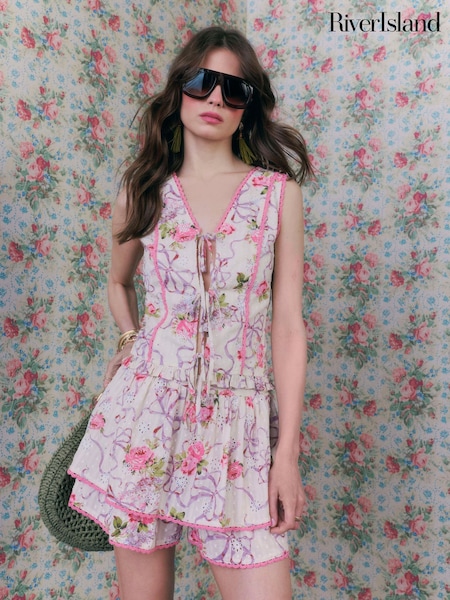 River Island Cream Cabbages and Roses Sleeveless Floral Print Corset Top