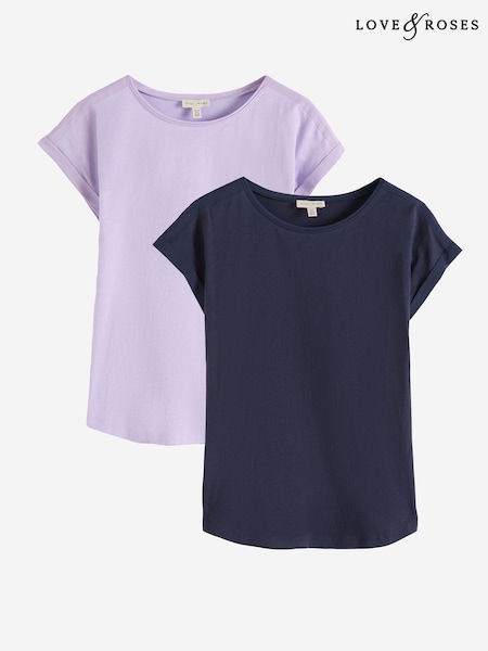 Love & Roses X2 Navy and Lilac Crew Neck T-Shirt