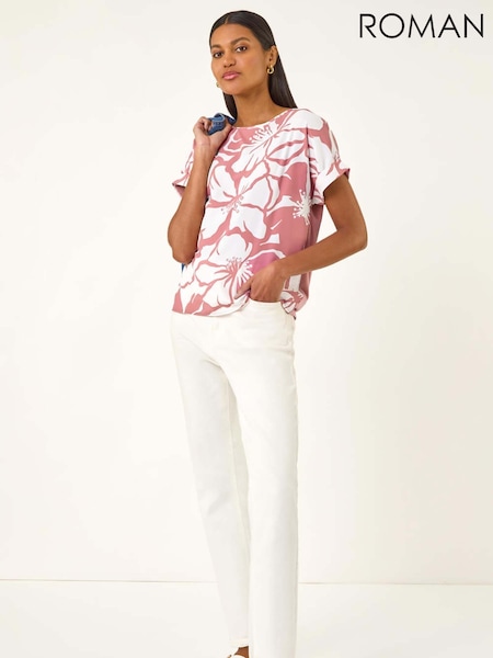 Love & Roses x RHS Pink Floral Chilli Print Flutter Sleeve Jersey T-Shirt
