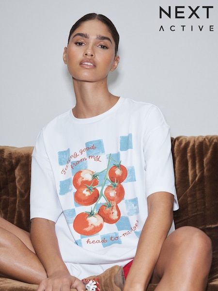 Active White Tomato Cotton Graphic Oversized T-Shirt