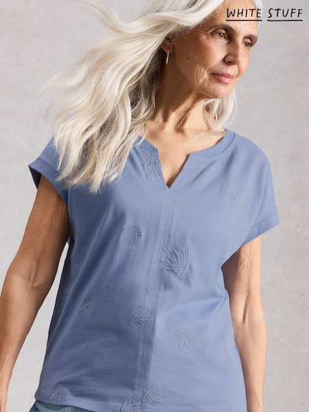 White Stuff Blue Cotton Blend Nelly Notch Neck T-Shirt