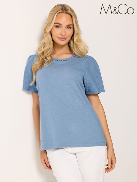 M&Co Green Petite Embroidered Sleeve T-Shirt