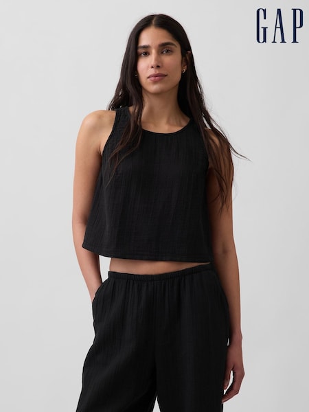 Gap Black Cotton Gauze Racer Shell Vest