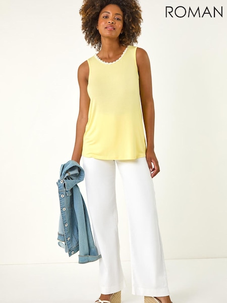 Roman Yellow Daisy Neck Trim Vest Top